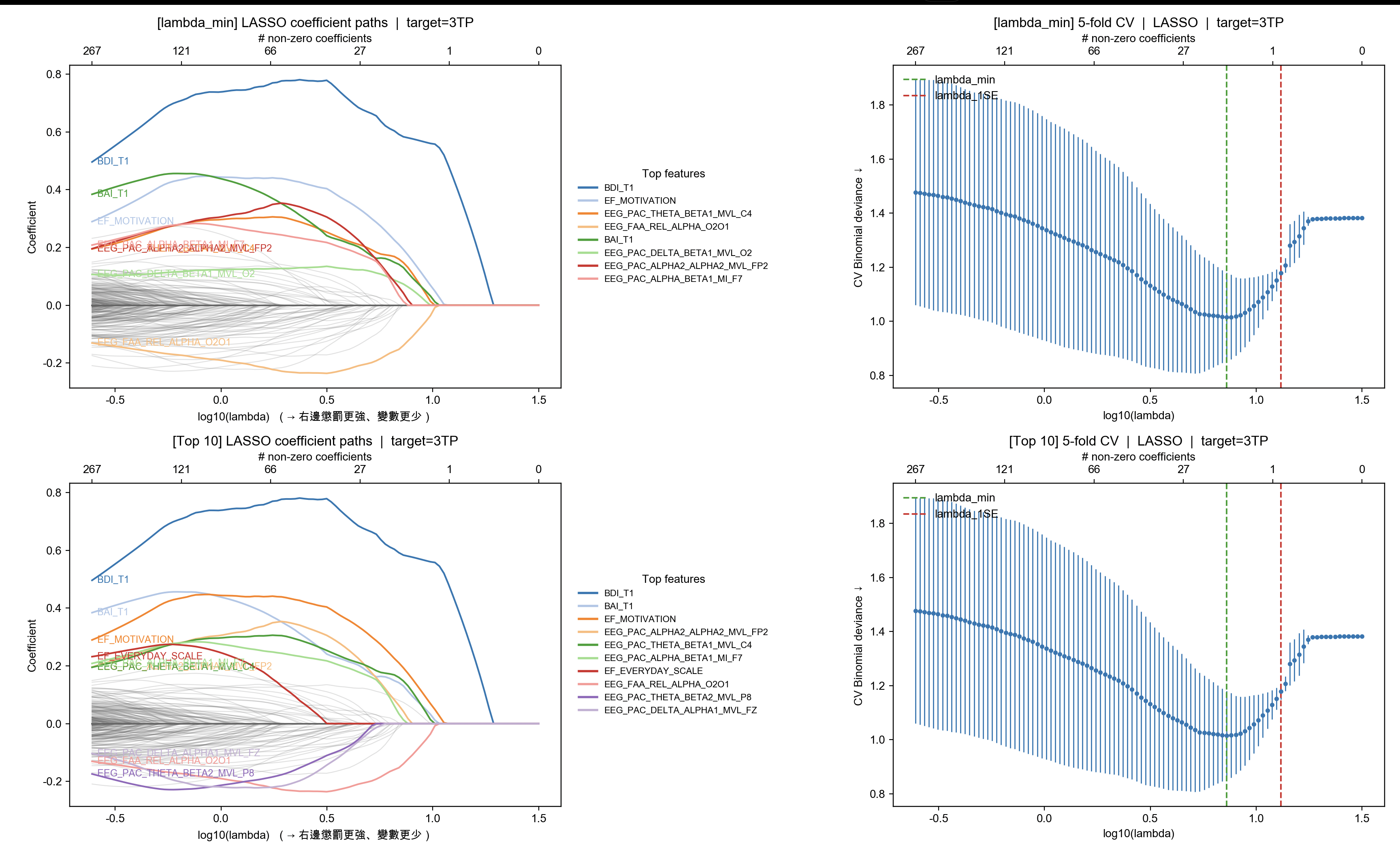 [特徵] 使用欄位(前 15):['BDI_T1', 'BAI_T1', 'EEG_FAA_REL_ALPHA_F4F3']